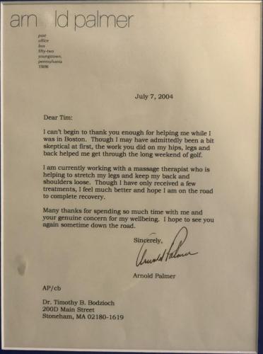 Dr. Timothy Bodzioch has helped many people benefit from natural health care including Dallas Page, Tim Wakefield, Jim Rice, Lee Majors, Arnold Schwarzenegger, Chi Chi Rodriguez, Peter Jacobson, Arnold Palmer, and Cirque Du Soleil!